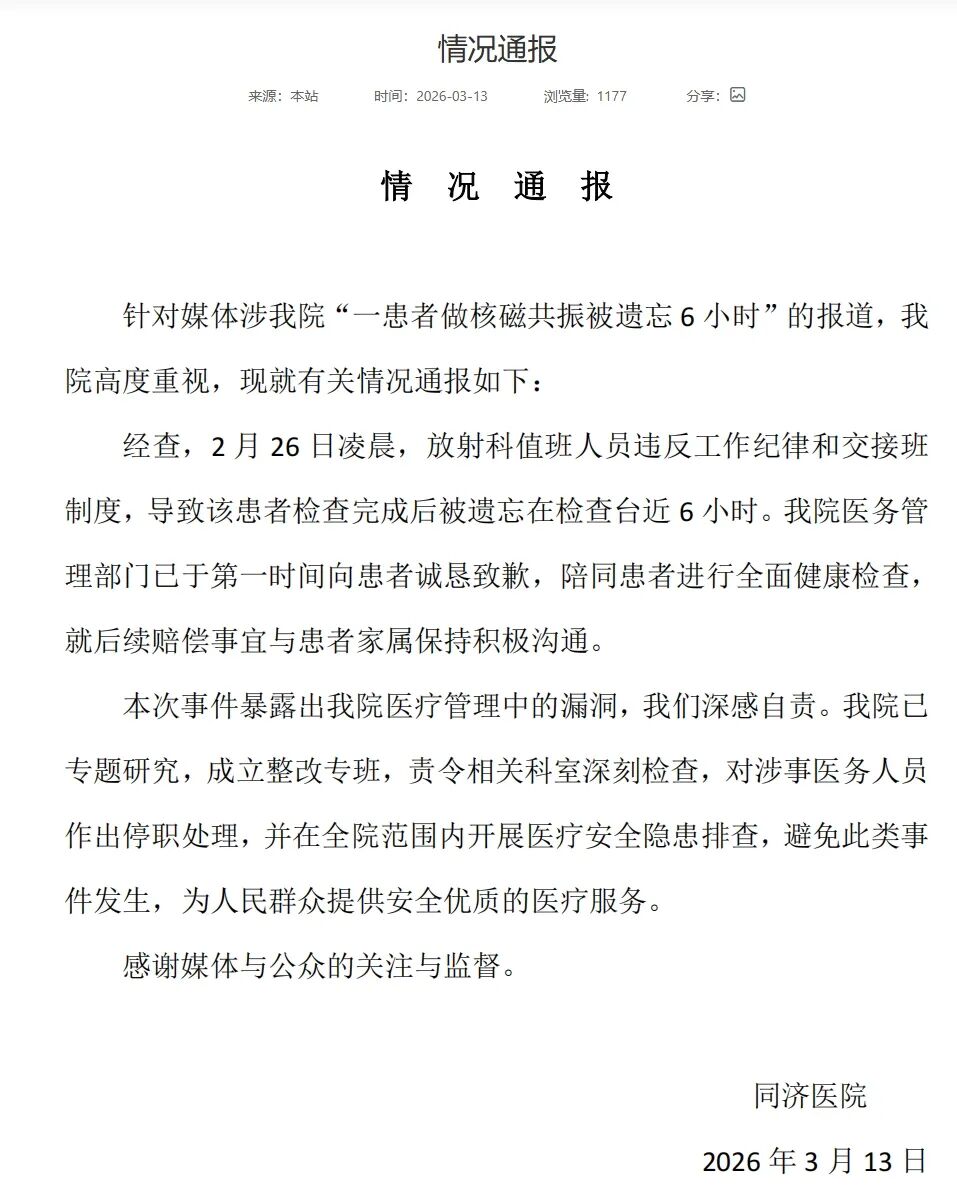 这件事也给所有医院敲响警钟:核磁检查不是简单的机器操作,患者的安全必须放在第一位。流程再完善,不执行等于零;制度再全面,不负责任就是坑害患者。